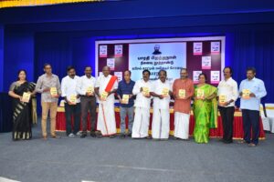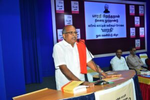 ‘கரிசல் காட்டின் கவிதைச் சோலை பாரதி’ நூலின் முதல் பிரதியை நீதியரசர் திரு. ஜி. ஆர். சுவாமிநாதன் வெளியிட, திரு. நாஞ்சில் சம்பத் பெற்றுக்கொண்டார்.