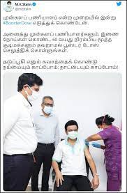 இதைத்தொடர்ந்து கடந்த ஏப்ரல் மாதம் 22-ஆம் தேதி முதல்வர் மு.க. ஸ்டாலின் சென்னை காவிரி மருத்துவமனையில் இரண்டாவது டோஸ் தடுப்பூசி எடுத்துக் கொண்டார்.