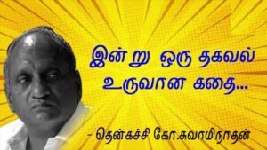 இந்த “இன்று ஒரு தகவல்” நிகழ்ச்சி உருவானதே ஒரு சுவாரசியமான சம்பவம். அது குறித்து தென்கச்சி சுவாமிநாதன் கூறியதை காது கொடுத்து கேட்கலாம்.