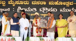 கர்நாடகா மாநிலத்தில் சுற்றுப்பயணம் மேற்கொண்டுள்ள குடியரசுத் தலைவர் திரௌபதி முர்மு மைசூரு தசரா பண்டிகையை நேற்று தொடங்கி வைத்தார்.