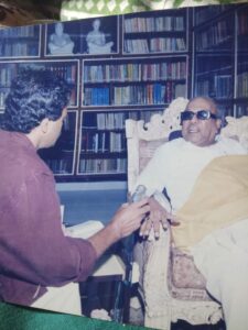 மெல்லத் தோளில் தட்டி “கட்டுரையை ஆரம்பிச்சுக்கிறது அருமையா இருக்குய்யா’’ சிரிப்புடன் பாராட்டியவர், நான் கையோடு கொண்டு போயிருந்த ஐந்து புத்தகப் பிரதிகளையும் கேட்டு வாங்கிக் கொண்ட அன்பான தருணம் அவரை நெருக்கமாக உணர வைத்தது.