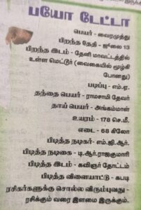 அதன் தொடர்ச்சியாகவே அண்மையில் தினத்தந்தி நாளிதழில் கவிப்பேரரசு வைரமுத்து அவர்கள், தனது சுயவிவரக் குறிப்புகளைக் குறிப்பிடும் போது தனக்குப் பிடித்த நடிகராக எம்.ஜி.ஆர் எனக் குறிப்பிட்டுள்ளார்.