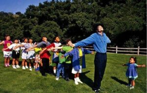அவர்களுடன் ரயிலில் அந்த மாளிகையைச் சுற்றிச் சுற்றி வந்தார். பொம்மைகளை வாரி இறைத்தார். தியேட்டரில் அவர்களுடன் அமர்ந்து பல காமிக்ஸ் படங்களைக் கண்டுகளித்தார். ரோஸ்வுட் பியானோவில் இசை கற்றுக் கொடுத்தார்.