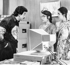 1980 இல் ஹாலிவுட்டில் வெளியான 9 டூ 5 படத்தின் பாதிப்பில் கமல் ஒரு கதை எழுதி கிரேஸி மோகனிடம் தந்து, அதற்கு திரைக்கதை, வசனம் எழுதச் சொல்கிறார்.