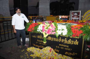 முன்னதாக தி.நகரில் உள்ள எம்.ஜி.ஆர் நினைவில்லத்தில் அமைந்துள்ள அவரது திருவுருவச் சிலைக்கும், இதேபோல், அடையாறில் உள்ள டாக்டர் எம்.ஜி.ஆர். ஜானகி மகளிர் கலை மற்றும் அறிவியல் கல்லூரியில் அலங்கரித்து வைக்கப்பட்டுள்ள எம்.ஜி.ஆரின் திருவுருவப் படத்திற்கும் மலர் தூவி மரியாதை செலுத்தினர்.