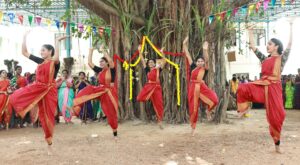 இந்த நிகழ்ச்சியில் நான்காயிரத்திற்கும் மேற்பட்ட மாணவிகள் வண்ணமயமான தாவணி, பட்டுப் புடவைகளை அணிந்து உற்சாகத்துடன் பங்கேற்றனர்.