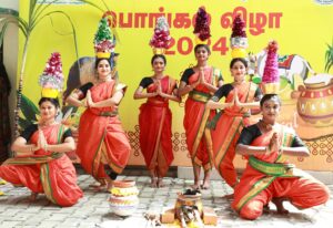 இந்த விழாவில் மாணவிகள் பாரம்பரிய முறையில் மகிழ்ச்சியுடன் பொங்கல் பண்டிகையைக் கொண்டாடினர்.